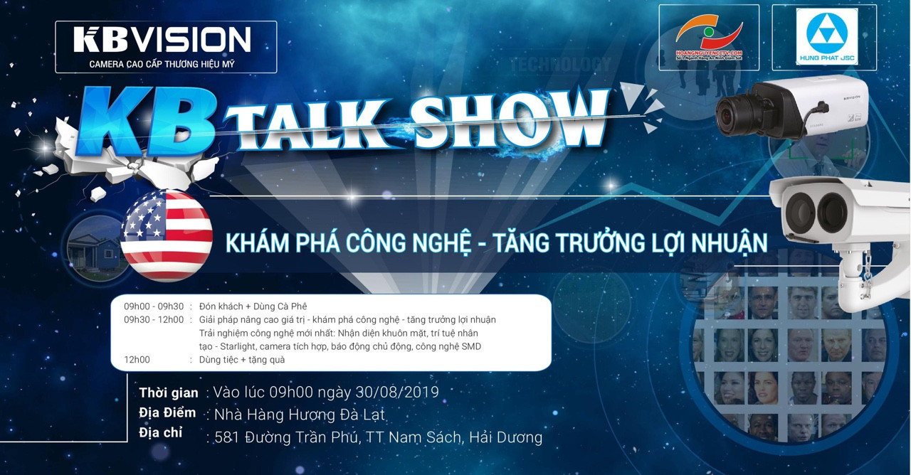 Ngày 30 tháng 8 năm 2019 HOANGNGUYENCCTV tổ chức buổi Talkshow tại Nam Sách - Hải Dương . Đây là buổi Talkshow Khám phá công nghệ - tăng trưởng lợi nhuận cùng KBvision Hoàng Nguyễn. Từ Tháng 5/2019 HOANGNGUYENCCTV là nhà phân phối chính thức Camera KBvision - Thương hiệu Mỹ tại thị trường Miền Bắc. Lễ ký kết hợp đồng phân phối dưới sự chứng kiến của gần 500 người tại Trống đồng Palace số 289 Hoàng Quốc Việt.
